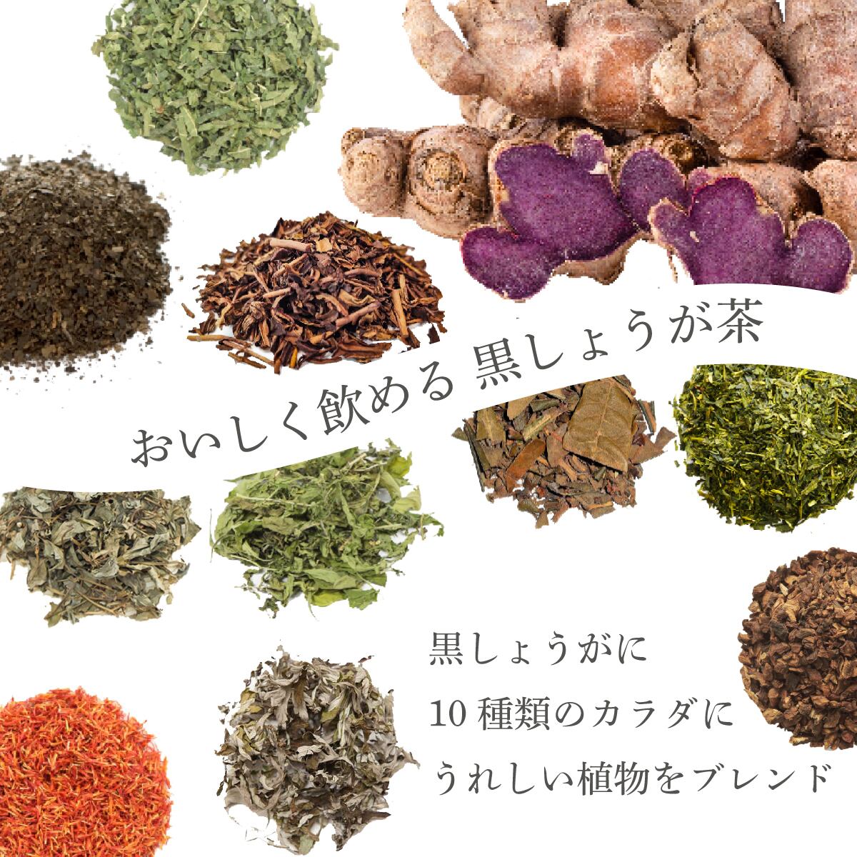 桑葉(国産)、ほうじ茶、ビワ葉、クコ葉、杜仲茶、緑茶(国産)、どくだみ、黒生姜、紅花、たんぽぽ根、よもぎ